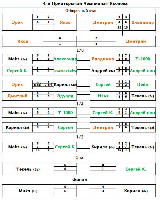 зАВЕРШИЛСЯ 4-Й пРИОТКРЫТЫЙ ЧЕМПИОНАТ ЯСЕНЕВА